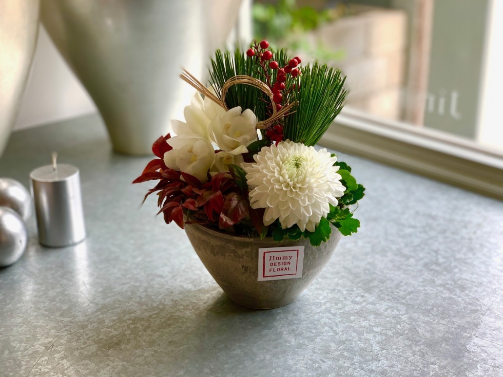 新春を迎える、松や南天など縁起の良いお花を取り入れた商品です。