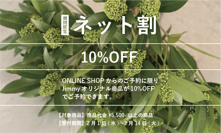 本日から二週間、ONLINE SHOPからのご予約に限り「ネット割 10%0FF」始めました。