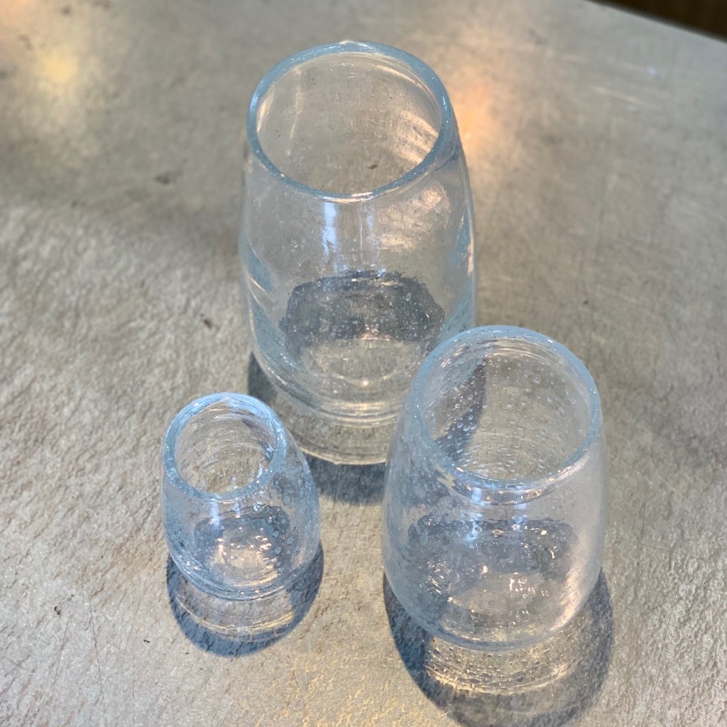 ガラスに気泡が入っていて、丸みがあって、暖かいイメージです。
