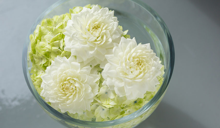 今一度、お花と向き合うきっかけを頂いたお客様に感謝し、「シンプル」というコンセプトのもと、「色」にごまかされず、お花本来の美しさを引き出すため、お花屋さんの生命線ともいえる「色」を絞り込むことを決心し「白・グリーン系のお花の専門店」という世界で一つだけのオンリーショップを目指しました。